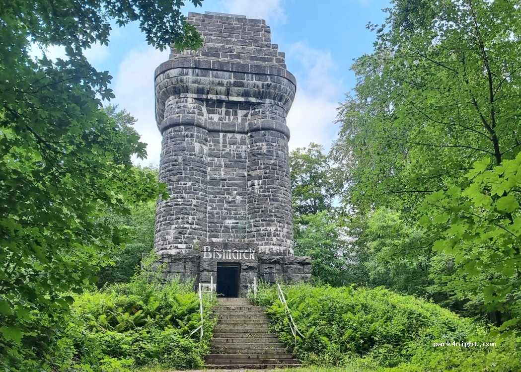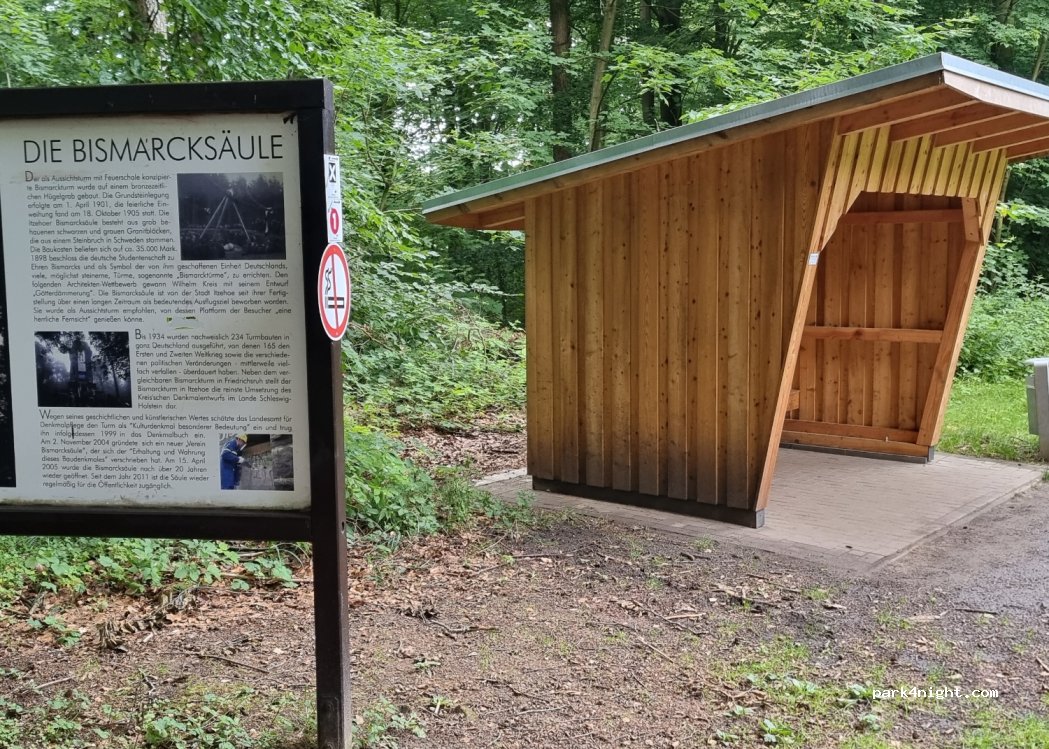 About 300m uphill is the Bismarck Tower in the forest (see photo!). There are also two rubbish bins and benches, one of which is even covered.