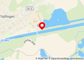 Parkplatz an der Donau, viele Baggerseen in naher Umgebung. Läden im Ort Thalfingen. Tagsüber Gassi-Gänger; Straße in Hörweite, aber für uns nicht störend