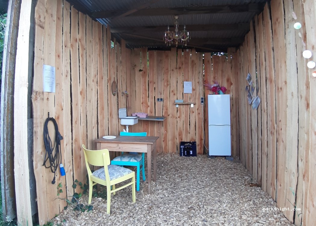 Really good place with own brewery, they had a fridge with their own bottles, where you could wash up and you also paid for the pitch (cash only) and the beer. Pitch included electricity for 15€ and 2€ for a bottle of beer.