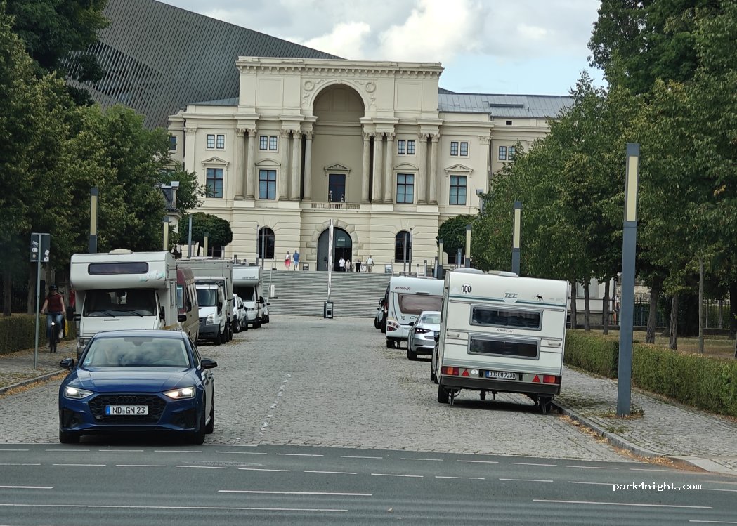 Parcheggio a lato di una strada, non eccessivamente trafficata e vicino ad un parco. Alla fine della strada c'è il museo della storia militare. Abbiamo dormito abbastanza bene. La notte è stata relativamente tranquilla, ma al mattino hanno iniziato a passare molto presto le auto per andare nei vicini uffici. Va bene per una notte. L'Altstadt è a circa 3km di distanza.