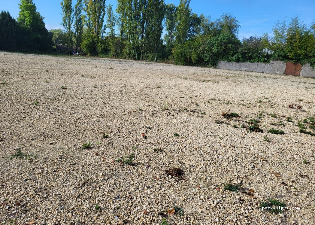 Grand parking plat sur gravier. Aucun service. Aucun charme, mais on y'a passé une nuit calme.