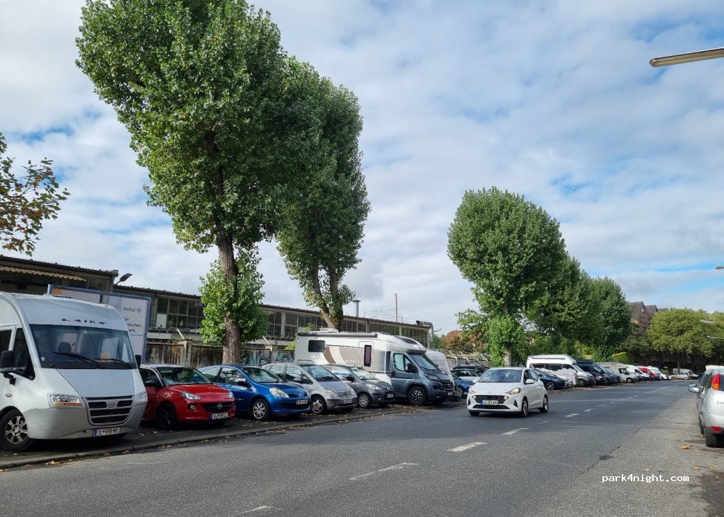 Viele kostenlose Parkplätze direkt an der Straße. Sowohl tagsüber als auch nachts möglich. Morgens recht früh Verkehr. Ca 15min in die Innenstadt