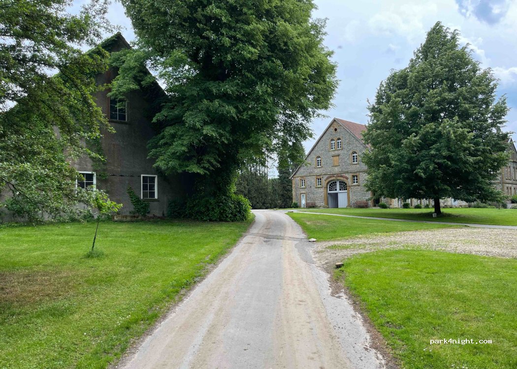 Parking privé rural dans un domaine historique. Vous serez toujours seul et tranquille, avec une vue imprenable sur la forêt de Teutoburg.