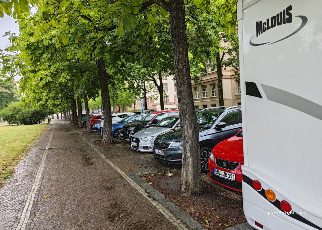 Guter Stellplatz .... nicht auf der Seite der Schule parken, haben einen Strafzettel über 10 Euro erhalten, obwohl kein Verbotsschild vorhaben ! Auf der Parkbuchtseite nur für VAN's geeignet. - wie wir feststellten war jedoch des Abends und auch Morgens alles belegt war - deshalb nur 1 *