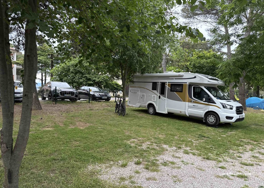 Wir wollten eine Nacht bleiben, sind dann aber gleich weiter gefahren nach Kroatien. Stellplatz viel zu teuer und wirklich nicht gemütlich. Alles eingezäunt. Der Strand war auch nicht der Hit. Also wir würden ihn nicht weiterempfehlen, lieber noch ne Stunde fahren und was schönes in kroatien am Meer suchen. Das Personal an der Rezeption war allerdings sehr nett.