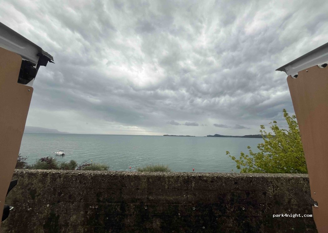 Parking avec une super vue, possibilité de descendre au sous sol et d’être protégé par la pluie. Accès à une petite plage et un bar avec douche et toilettes sur les horaires de jour. Parfait pour un van (hauteur limitée).