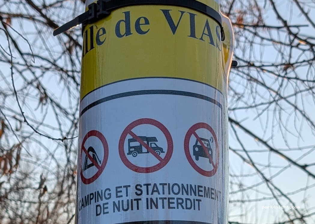No se puede pernoctar. Estancia de noche está prohibida mediante carteles. A todos tipo de vehiculos