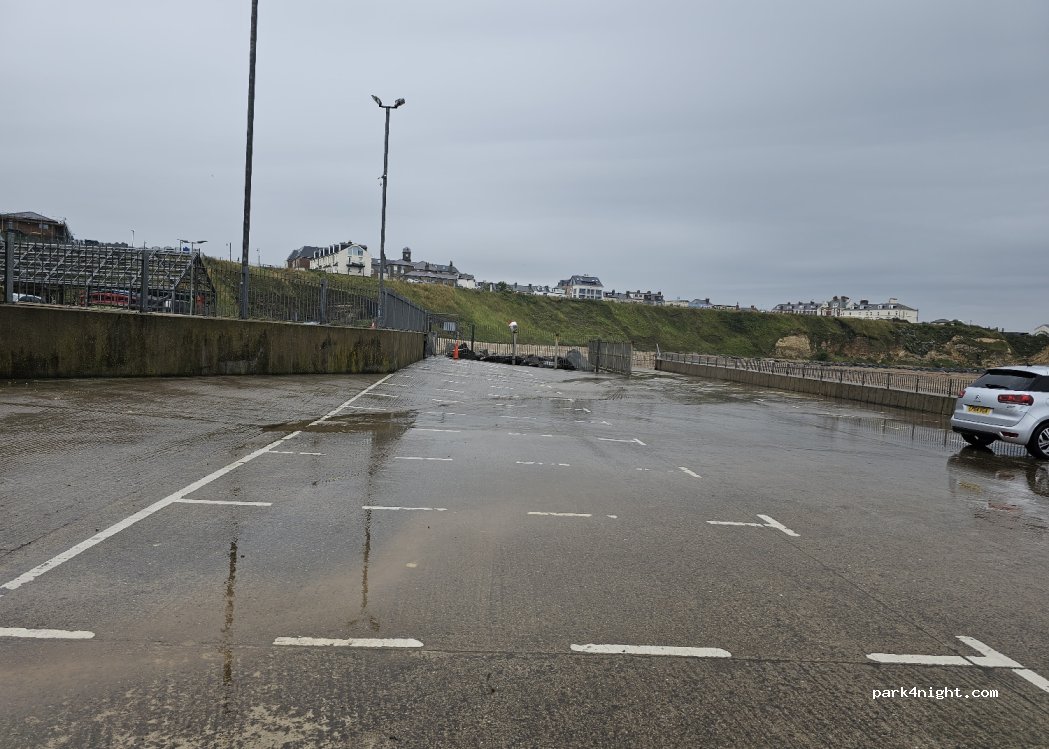 Leuk en rustig om te staan, wel niet meer gratis. Strand om honden uit te laten. Je kan ontbijten, ijsje bestellen of … fitnessen bij het handelspand op de site. Duidelijk niet overnachten hier.