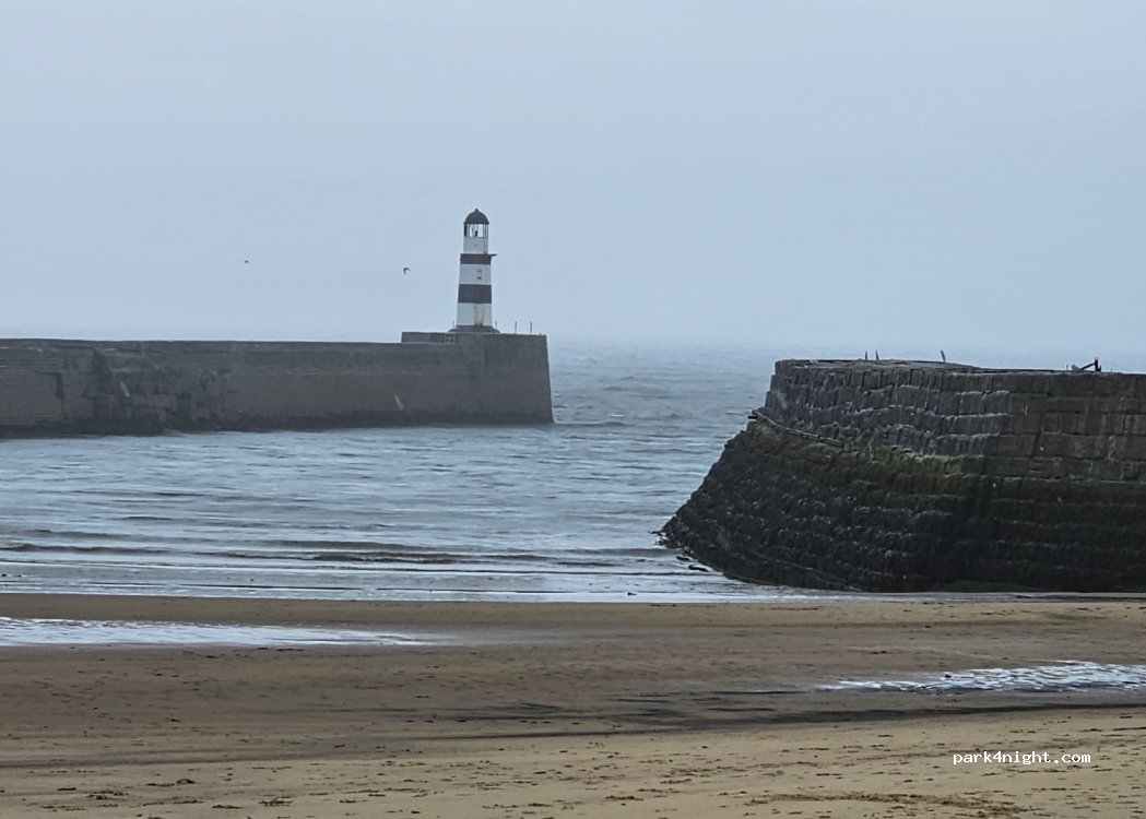 Large car park for the marina, smaller if the storm gate closed. No overnight parking. Cafés and ice cream parlours. Access to the beach. Good view of the lighthouse, if you are a pharologist.