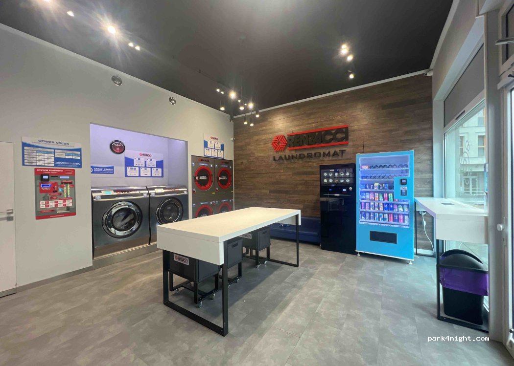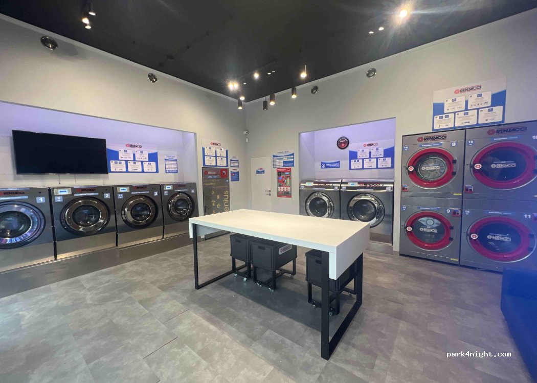 Clean and easy to use self-service laundry. Large and small machines. Detergent automatic. Instructions also in English, card or cash payments. Large ( paid) car park very close with space for larger vehicles if not too busy.