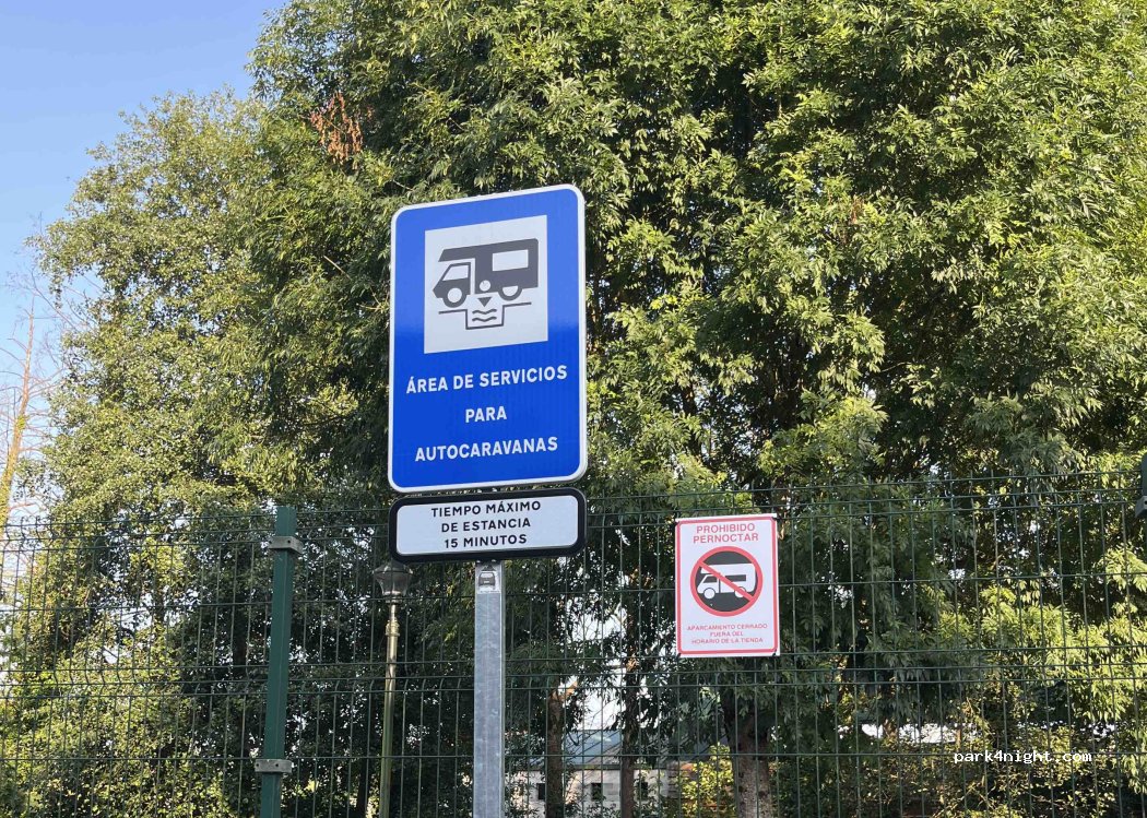 Se puede cargar agua y vaciar aguas grises y negras. Hay que pedir a algún empleado del supermercado que te habrán el agua