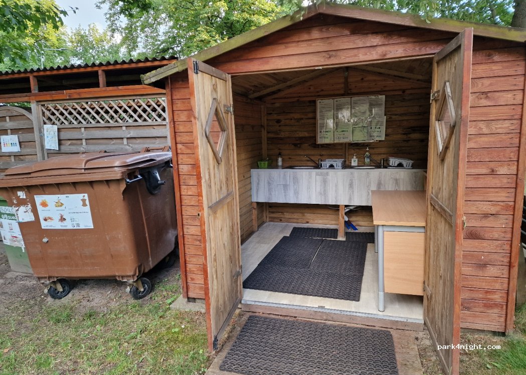 umzäunte Wiese mit Dixiklo, Abwaschbecken und Entsorgung, das wars. Duschen (und Rezeption) 200m weiter, haben wir nicht genutzt. Für 150 sloty eigentlich zu teuer. aber das ist wohl der Preis für die Stadtnähe