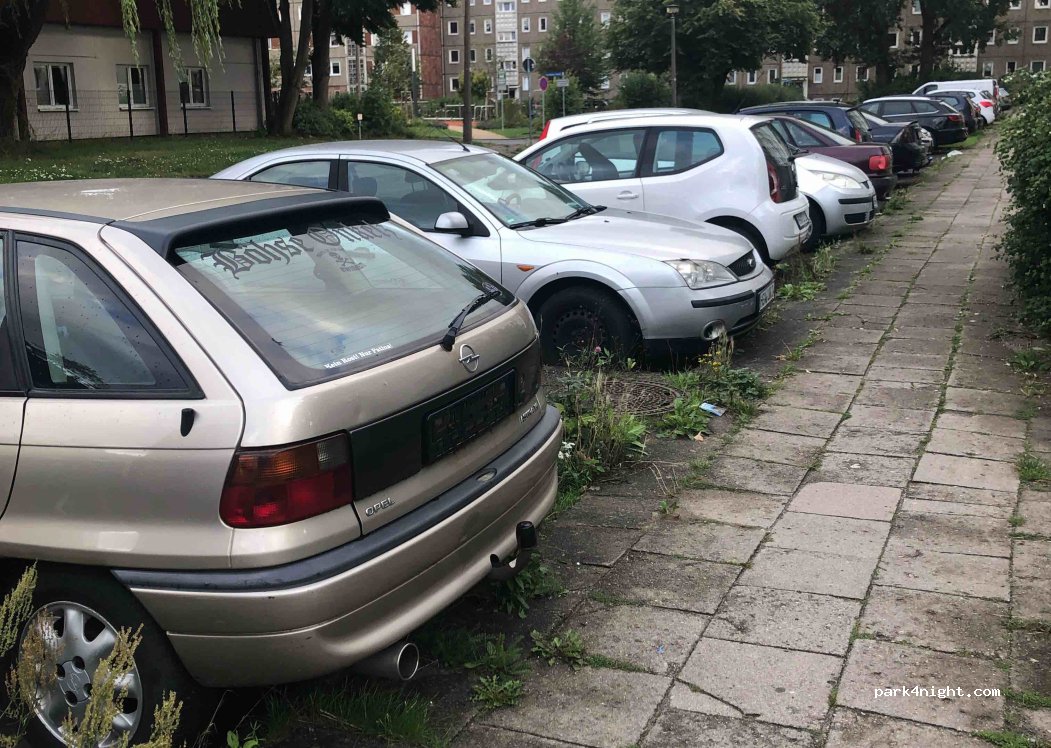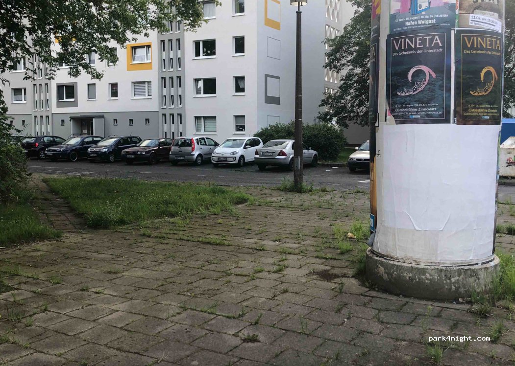 Parken in ruhiger Wohngegend. Tankstelle in der Nähe. Für eine Nacht ok.