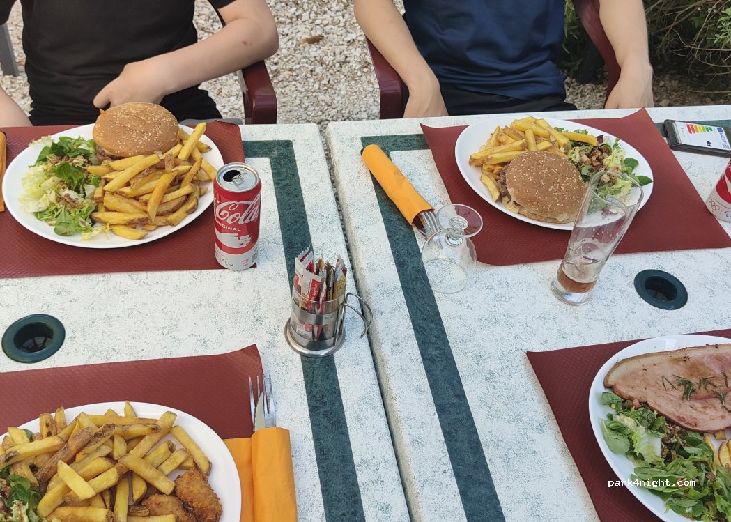 Heel vriendelijke, echt Franse gezellige camping. Ruime plaatsen. Veel groen. Weg erna toe was smal maar te doen met camper. Het eten was in een knus aangekleed buitenterras: heerlijk! Zwembad was ook even fijn! Bijna €41 voor camper incl.stroom. (2volw en 2 kinderen)