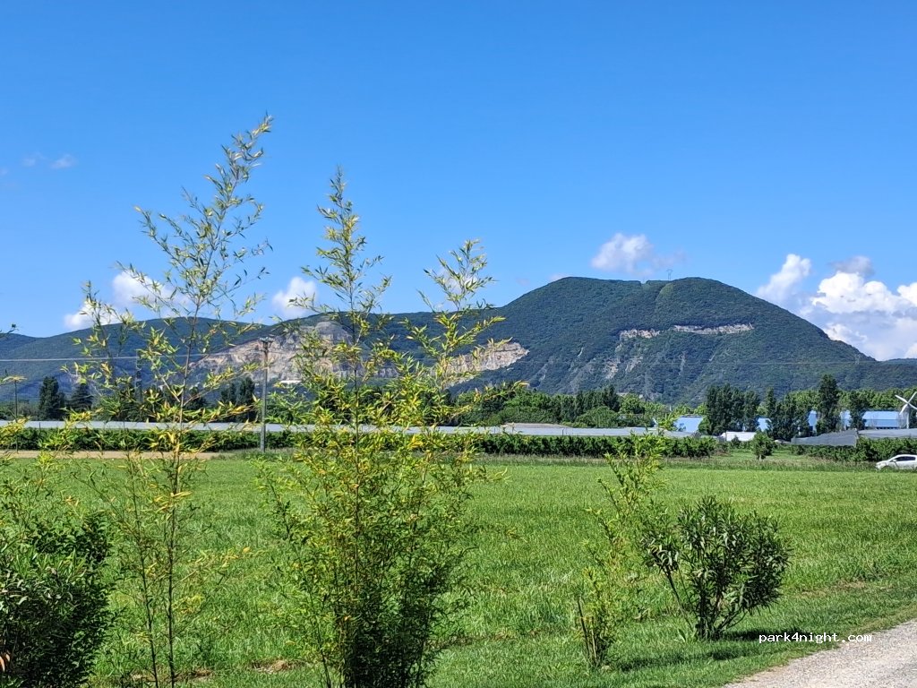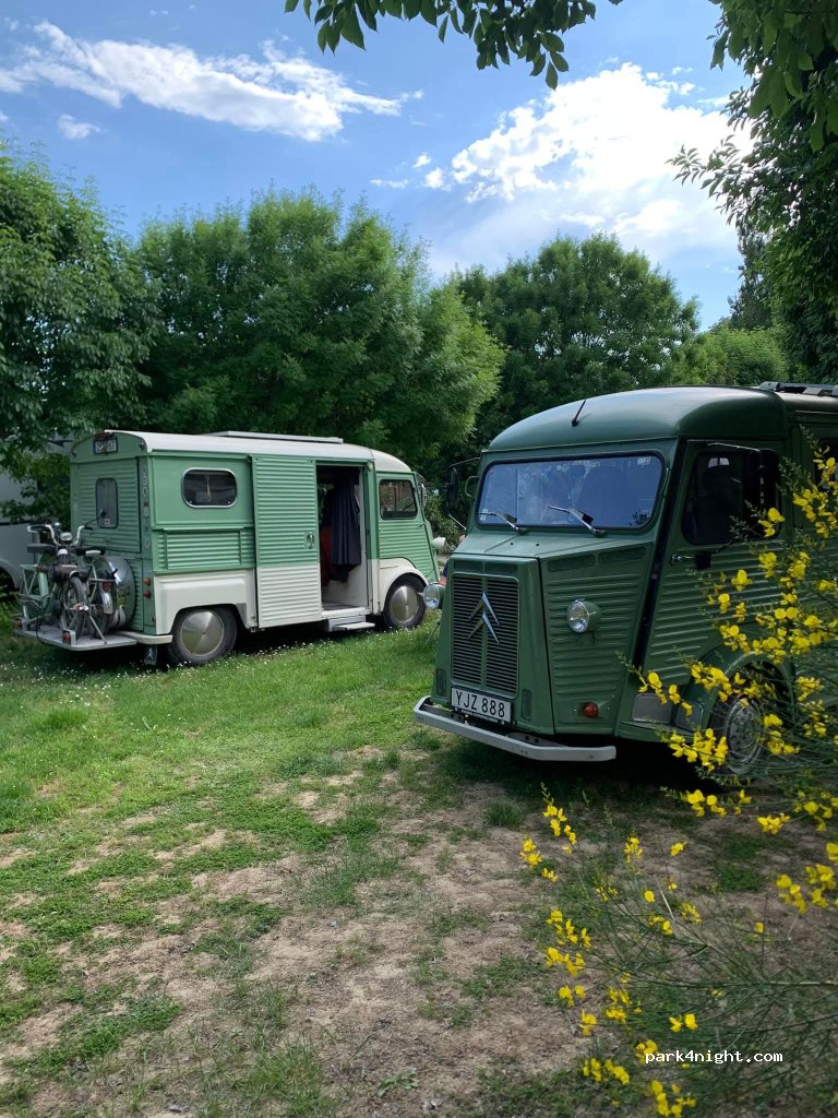 Accueil sympathique, pratique pour la halte de mi-parcours. Sanitaire propre, piscine. On entend un peu l’A7 mais pas gênant. 30 € pour trois sans électricité.