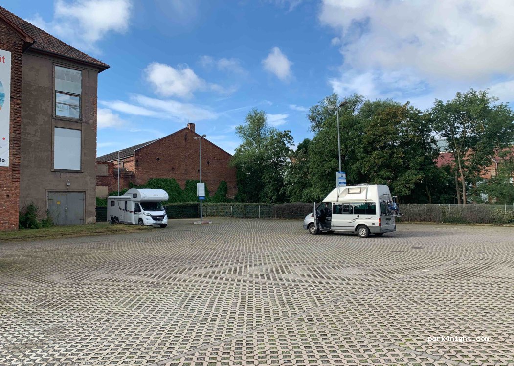 Parkplatz in der Nähe des angrenzenden Schwimmbades. Übernachten ist bei Nutzung des Schwimmbades gratis.