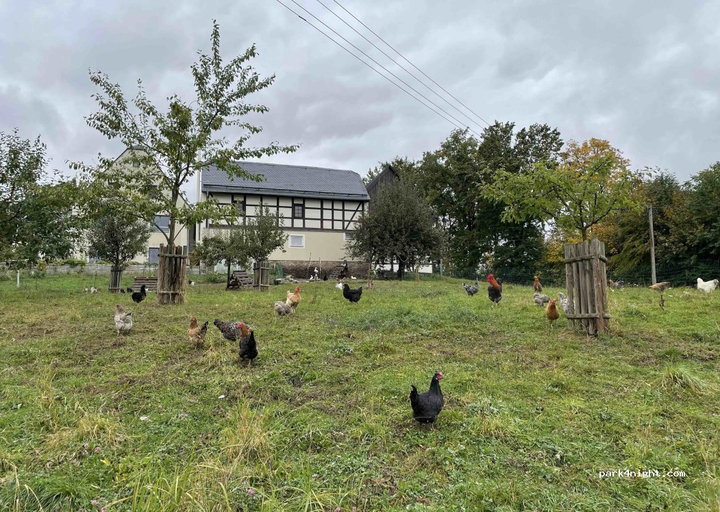 Nous mettons à votre disposition 2 places de parking privées sur notre ferme juste à côté de la chèvrerie. Les chiens calmes et amicaux sont les bienvenus ici. Des fruits/légumes de saison, du miel et des œufs de poules heureuses peuvent être achetés. Merci de vous inscrire à l'avance par email ou par téléphone en précisant le nombre de personnes, d'animaux et la durée du séjour pour une meilleure planification. Des toilettes invités sont disponibles et accessibles à tout moment. Nous avons hâte de vous voir et peut-être que vous apprendrez à connaître et à aimer la vie idyllique à la campagne.