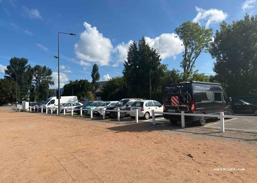 Wohnmobile nur vom 01.11. bis 31.03. erlaubt. Perfekt bis 5,40 Meter Länge. Bei 6 Meter muss man ganz an den Zaun ran und dann ist es oft noch knapp. Nicht jeder Parkplatz geeignet für 6 Meter. Schöner Ausblick, aber auch die Straße direkt hinter einem.