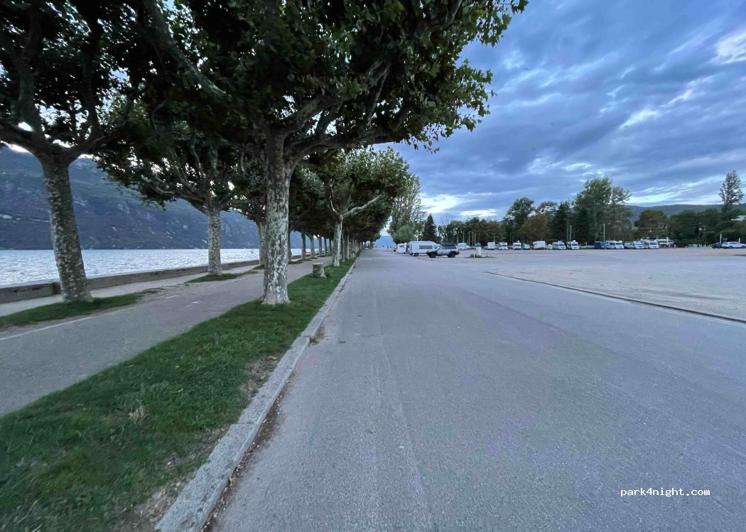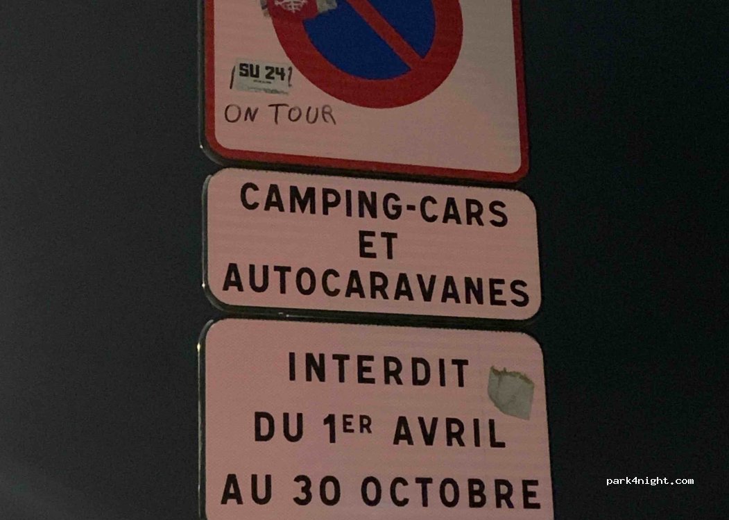 Las autocaravanas solo pueden circular por toda la zona del 1 de noviembre al 31 de marzo. Las plazas de aparcamiento se encuentran a lo largo de la calle. Si se conduce hasta la valla, se pueden encontrar plazas de hasta 6 metros de ancho. Los carriles de aparcamiento son muy estrechos y solo son aptos para furgonetas de este ancho.