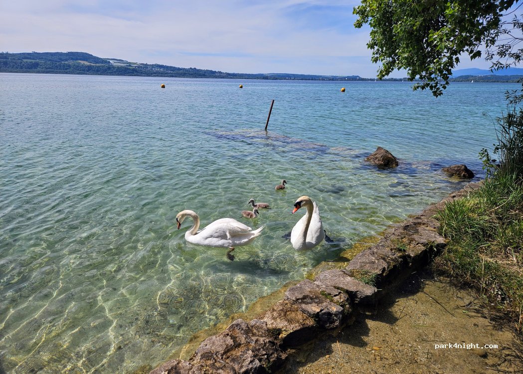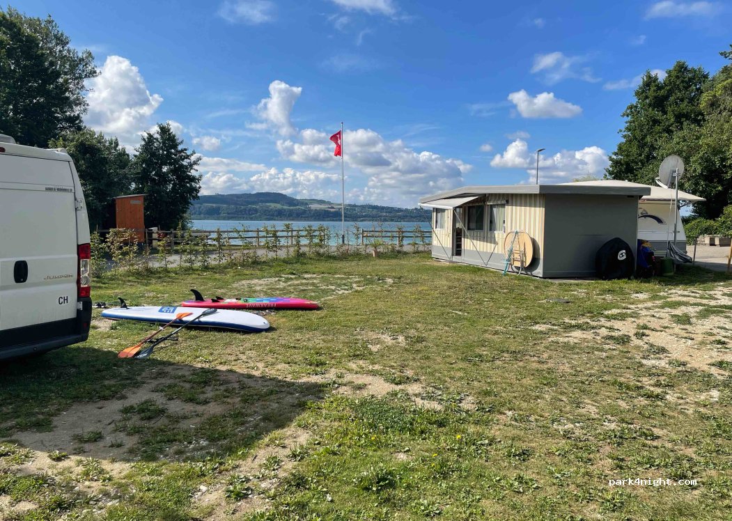It is a beautiful campsite right on Lake Neuchatel. Swiss cleanliness throughout with a friendly Portuguese welcome. Very quiet location. A nice Italian restaurant at the campsite.