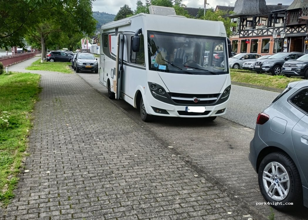 Parking along the Moselweinstrasse street, in Ellenz Polteradorf. Near the campsite and the boat for Beilstein . You have to be lucky to get a large spot for an AC.
