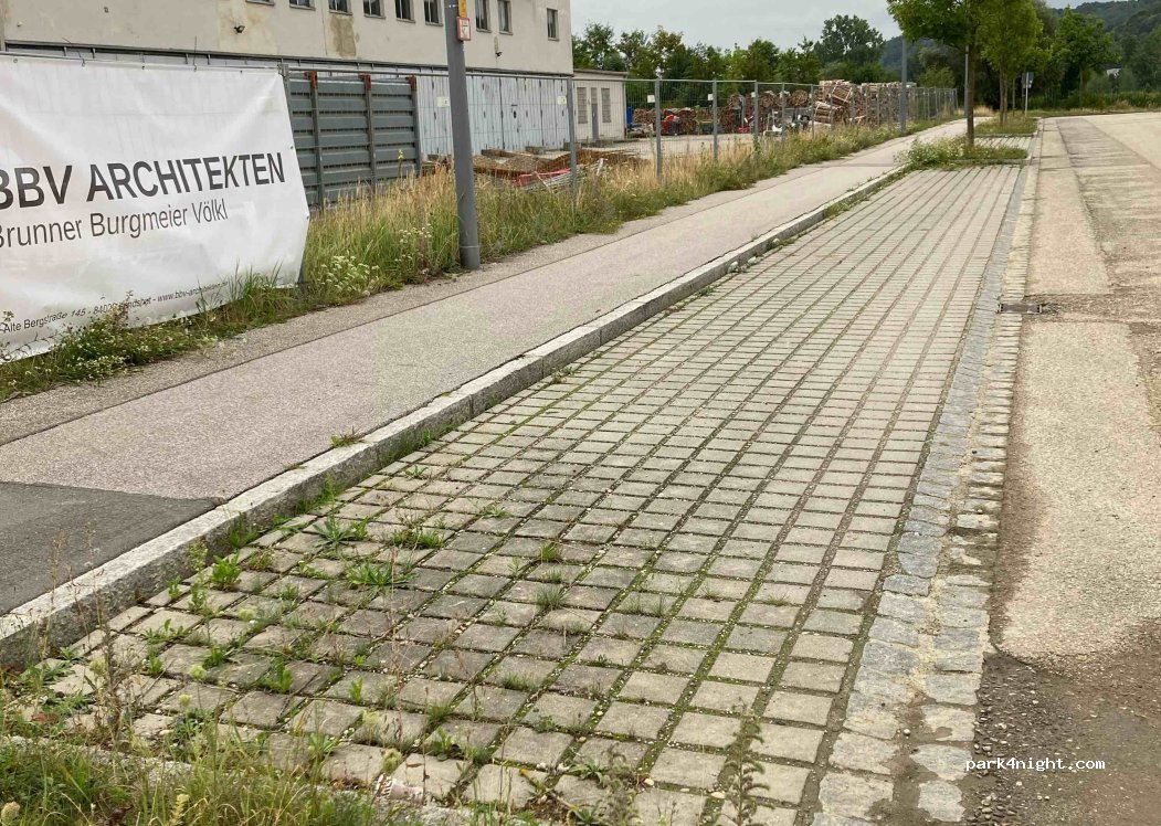 Free parking, mobile homes are not prohibited, therefore standing is permitted, large parking spaces on the left and right on the roadside, also suitable for larger mobile homes, very quiet near the Landshut exhibition center