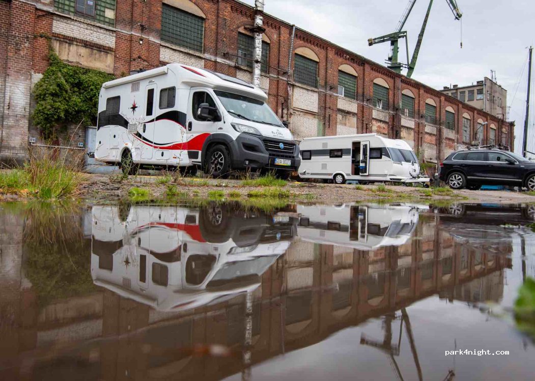 Guter Platz direkt in der Stadt, wenn man keine Ansprüche hat. Man steht nunmal mitten im Industriehafen. Wenn der Platz voll ist hinter dem Zaun nachfragen, dort haben ebenfalls 2-3 Camper platz. Preis ca. 110 PLN
