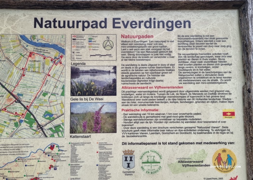 Öffentlicher Parkplatz, bei einer Grundschule, einem Dorfladen und einem Gemeindehaus. Die Gemeinde hat 2 Plätze mit einem deutlichen Schild ausgewiesen, an denen Camper maximal 3 Nächte lang kostenlos parken können. Keine Einrichtungen, aber im 50 Meter entfernten Dorfladen gibt es leckeren Kaffee und frisches Brot und Brötchen. Von hier aus ist es schön, in den Auen des Lek zu wandern (besonders schön Richtung Fort Everdingen).