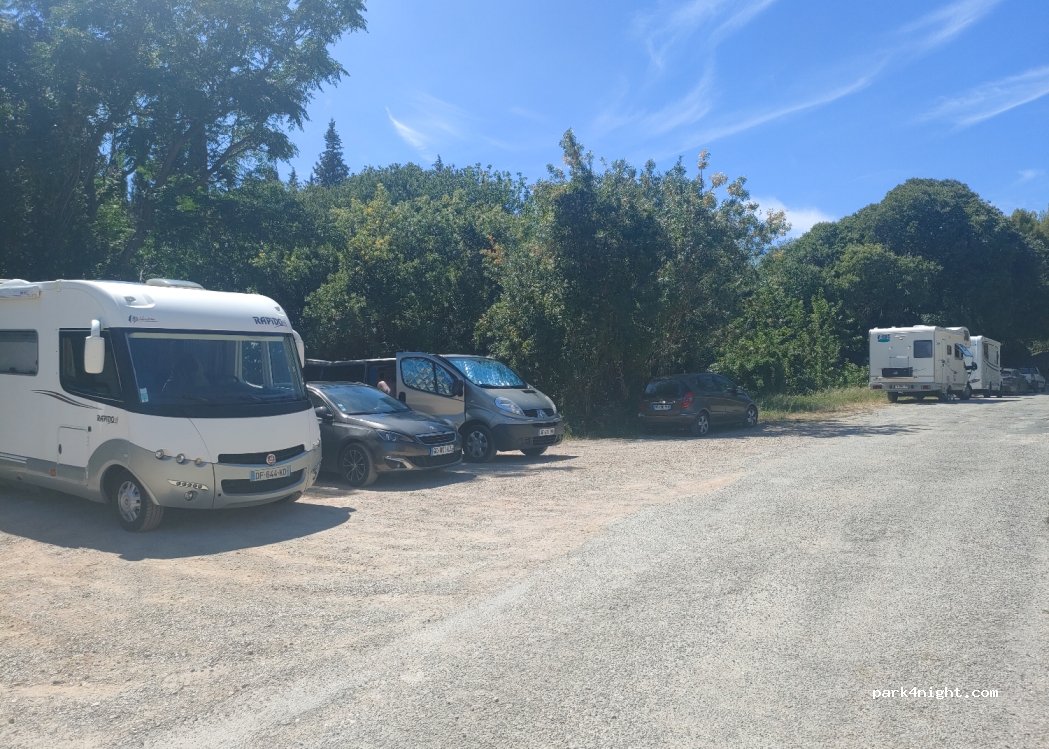 Small car park in front of the municipal workshops. About 1.5km from the Clamouse cave. not big enough to put 5 or 6 motorhomes if there are not too many cars.