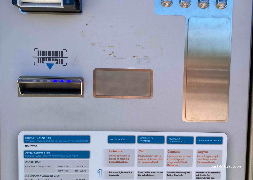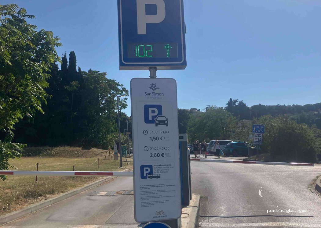 Parking day and night. It cost 30E for 24 h. Near is the open beach. Very quiet and I feel the best playce to stay at night iin Isola. With children is very comfortable. Close to the parking is a start very good bike route to Portoroz and Piran with tunel for the bicycler.i recommended