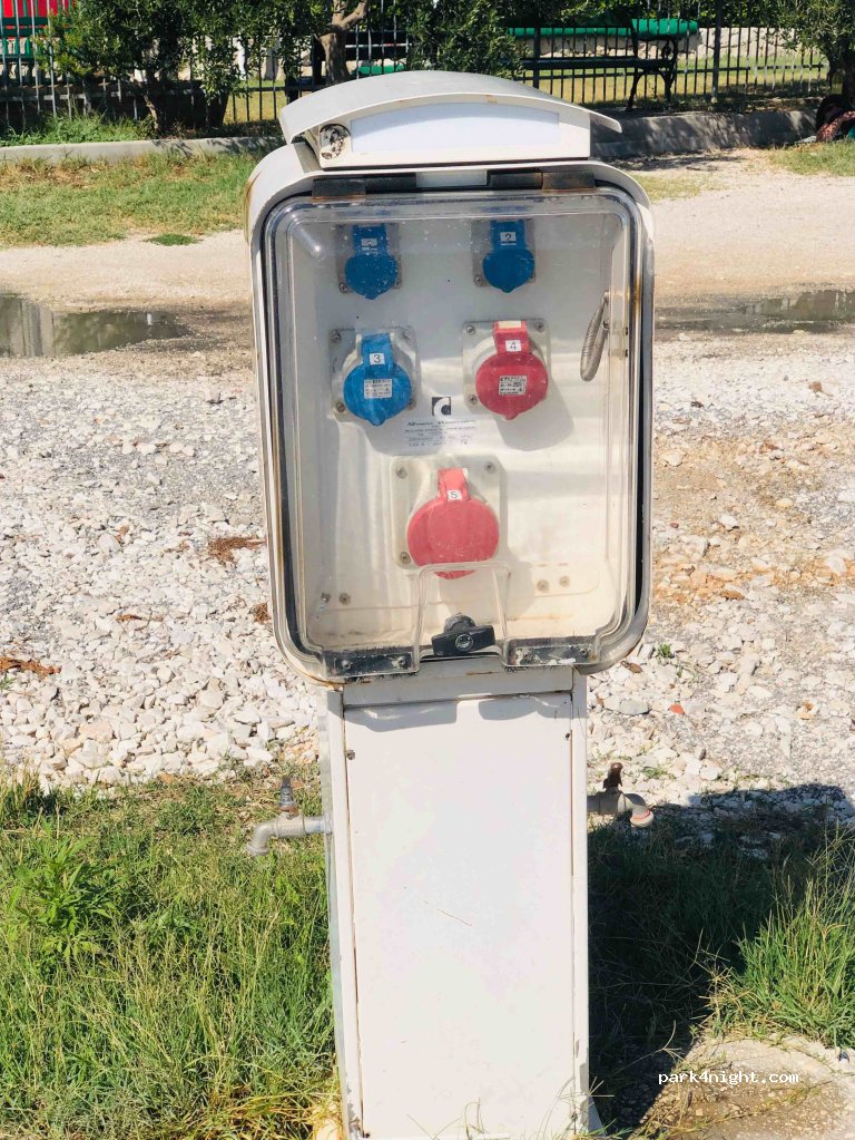 Wasser- und Stromanschluss hinter der Feuerwache, zugänglich für den Lieferwagen, den wir nicht getestet haben, sondern zum Auffüllen mit Wasser dienten!!