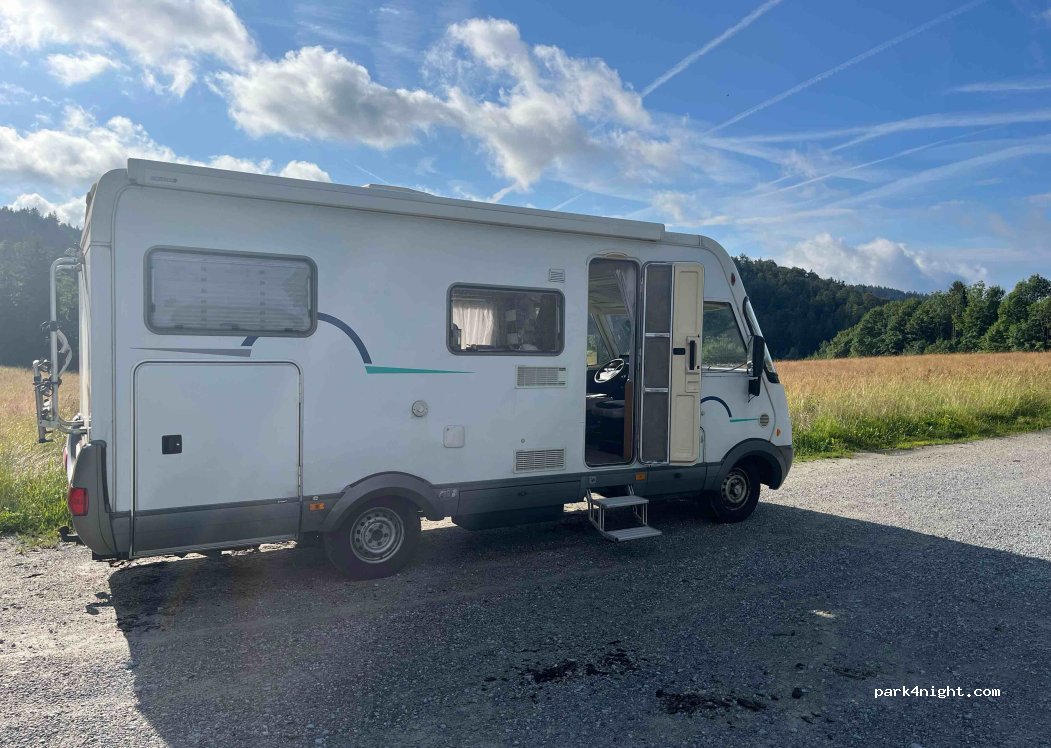 Abseits der Straßen (die letzten 250 Meter sind Feldweg) trotzdem rel. viel los. Verkehr beginnt bereits um 6 Uhr morgens. Ansonsten schöner Ausblick und Nachts sehr ruhig. Keinerlei Verbotsschilder.