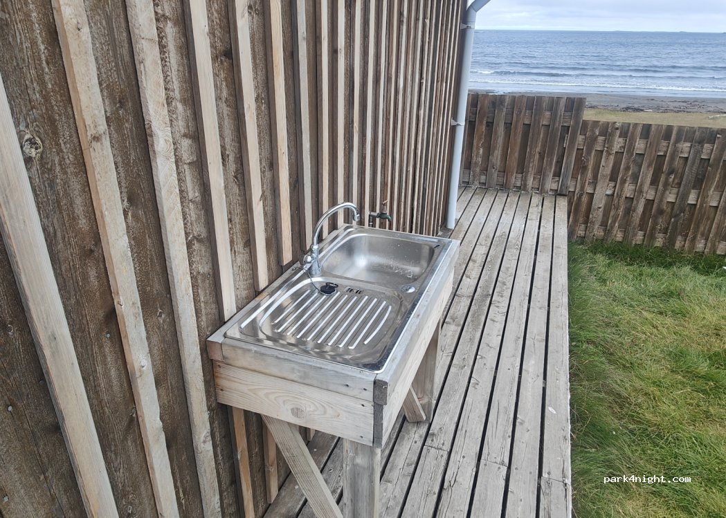 Le site est extraordinaire, mais ne vous attendez pas à avoir une douche ou même des lavabos avec de l'eau chaude juste deux wc néanmoins très propres, superbe stationnement en bord de plage, et cascade de Hvalárfoss à deux pas. 1500 Isk par personne, cher pour aucune prestation, juste un droit de stationnement comme très souvent en Islande, petit détail, 15 km de piste en 1h et en Sprinter 4x4