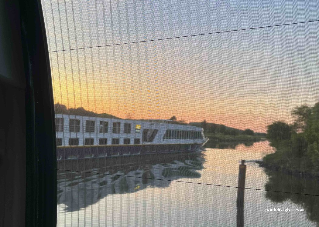Sauberer Parkplatz (ausgeschildert) an einer Bootsanlegestelle. Eine Gruppe von Anglern hat sich dort getroffen und bis spät in die Nacht gesessen. Störte mich persönlich nicht. Auch die direkt anliegende Landstraße ist nachts kaum befahren. Im Ort gibt es eine Gaststätte und eine Bäckerei/Cafe. Der Parkplatz wird nachmittags/abends ganz ordentlich genutzt.