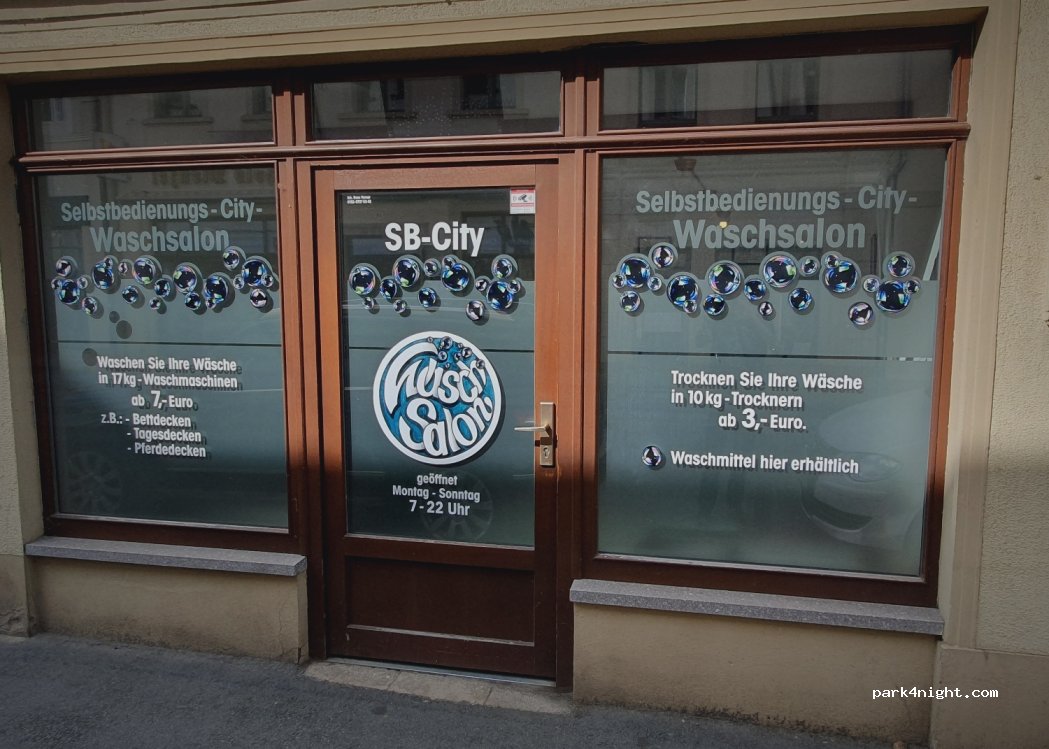 SB-City Waschsalon. Es hat 3 Waschmaschinen à 17 kg und 2 Wäschetrockner à 10 kg. Es wird mit Münzen bezahlt. Waschmittel selber mitnehmen. Sehr sauber und sehr freundlicher Besitzer. Parken mit Wohnmobil schwierig, aber in 1 km ist ein grosser Stellplatz.