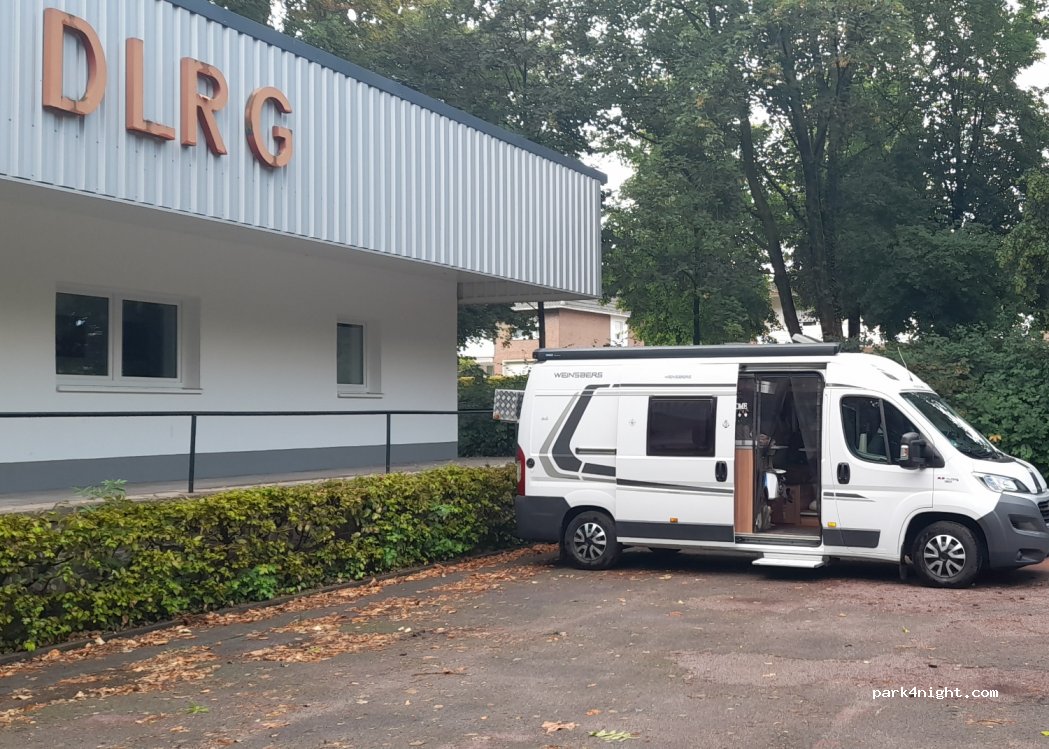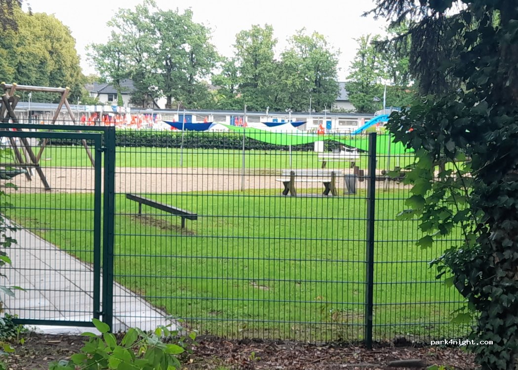Haben dort eine Nacht am Freibad gestanden.In der Nähe ein Spielplatz mit Mülltonnen.Geschützt von Bäumen aber TV Empfang!