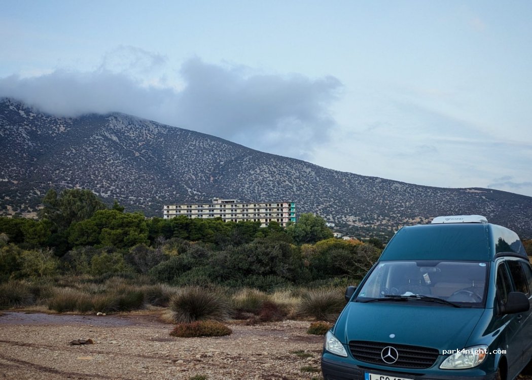 Durchschnittlicher Spot in einer schönen Bucht. Auch im März völlig "überbelegt". Leider viele Dauercamper, die sich häuslich einrichten. Perfekt, wenn man das verlassene Hotel besichtigen will oder im glasklaren Wasser baden möchte, aber nichts für die Nacht, wenn man einsam und ruhig stehen möchte.