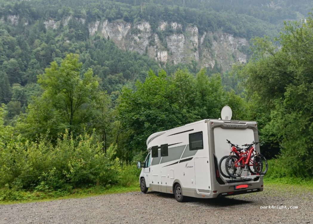 Parking gratuit très pratique comme point de départ de randonnées dans les environs. Nuitées possibles. Lieu pas tout à fait plat. J'y suis allé deux fois, une nuit chacun. Aucun service et relativement bruyant à cause de la circulation dans la rue qui passe. Cela ne nous a pas beaucoup dérangés.