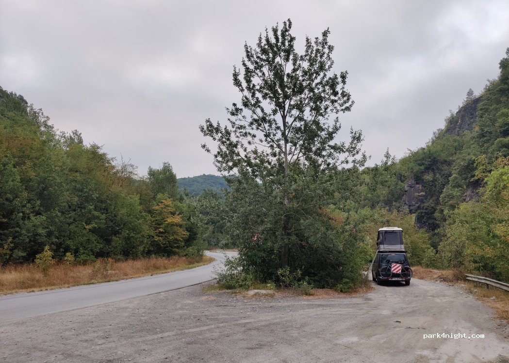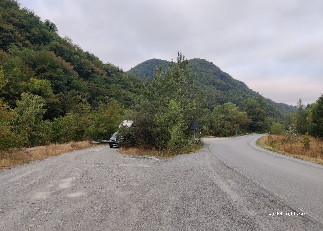 Pull-out dietro alcuni alberi e cespugli. Direttamente tra la strada e il torrente, invece, una notte abbastanza tranquilla.