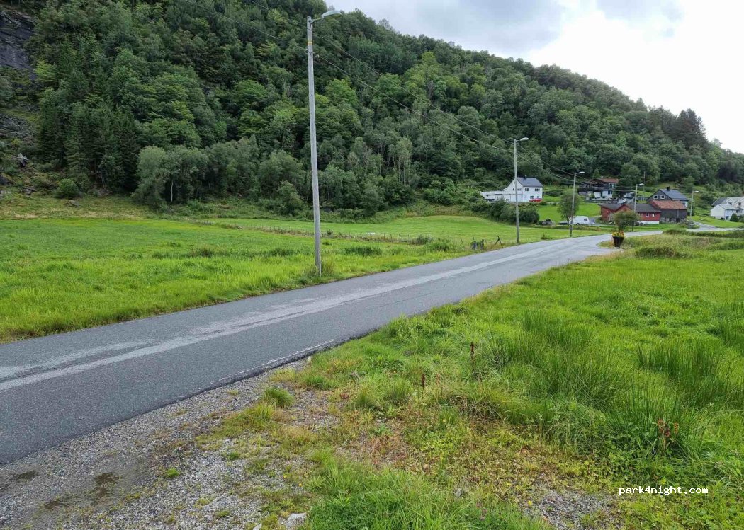Small parking space along a country road with very little traffic. Far from the main road. Good for a short rest or night before mountains. Space for a mobile home. We stopped here for a breakfast stop.