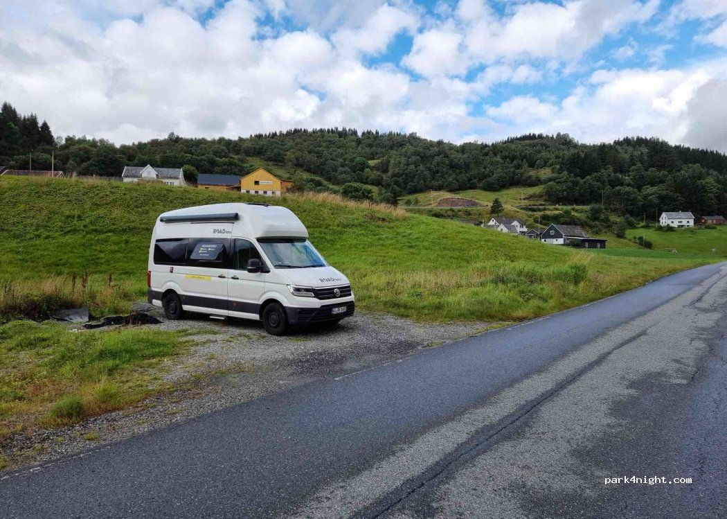 Kleiner Stellplatz entlang einer sehr wenig befahrenen Landstraße. Fern ab der Bundesstraße. Gut für eine kurze Rast oder Nacht vor Bergen. Platz für ein Wohnmobil. Wir standen hier für einen Frühstücksstopp.
