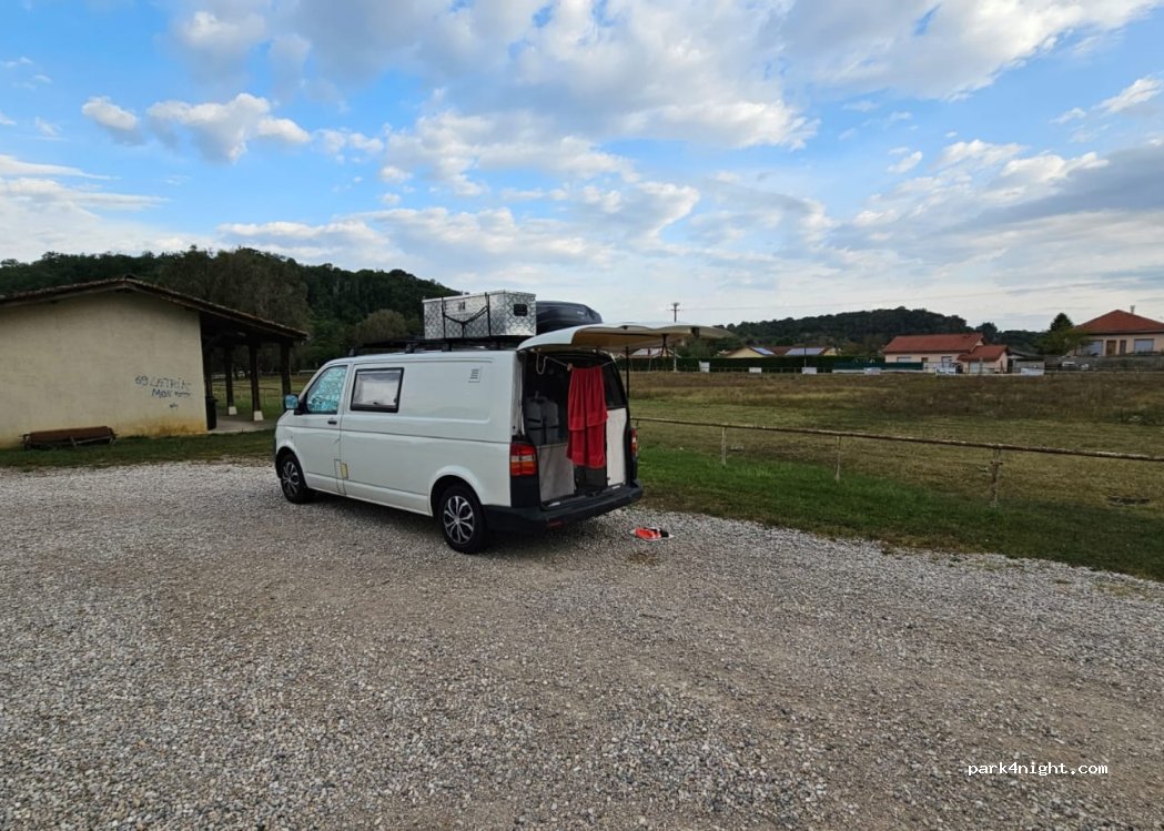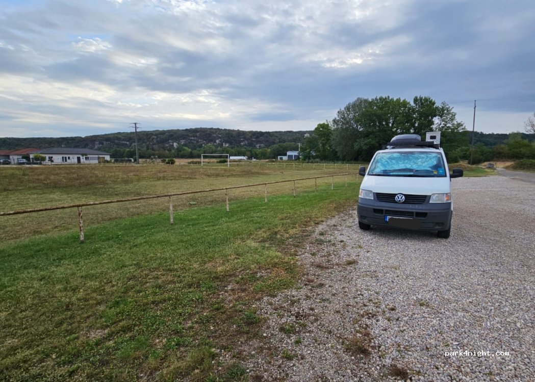 Ruhiger und ebener Stellplatz an besagtem verlassenem Fußballplatz in einer dünn besiedelten kleinen Siedlung. Abends durch eine Straßenlaterne beleuchtet und ein Mülleimer ist vorhanden. Haben hier gerne übernachtet.
