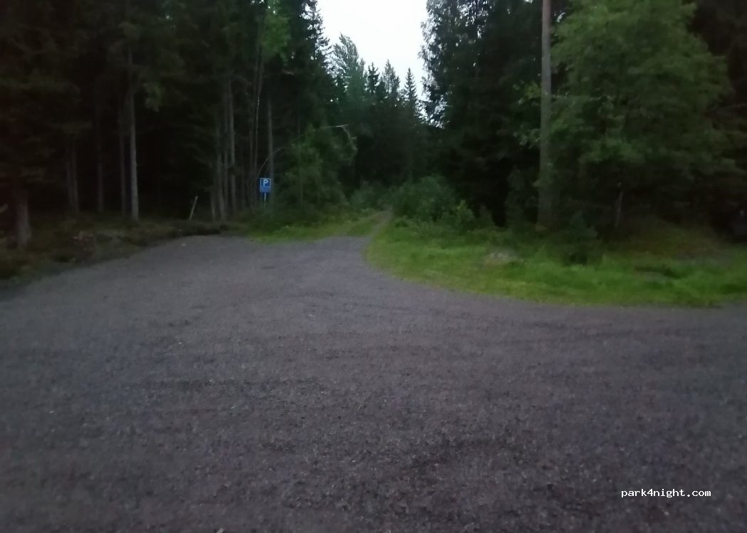 We expected quite a lot of vehicles, since it’s a large public parking area. But we were there all by ourselves. Nice with a toilet nearby and beautiful surroundings and possibilities for walks. Locals came from around 9 in the morning to take walks, collect mushrooms etc. Nice local who greeted us.
