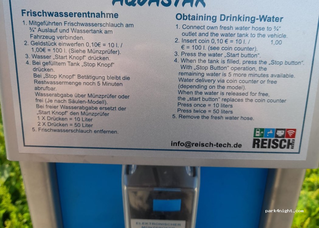 Ich finde es toll, dass es sogar im Winter bei Minusgraden Wasser gibt! Auch für große Fahrzeuge erreichbar. Die V/E klappt super. 10 € für den Teil eines PKW-Parkplatzes sind einfach zu viel.
