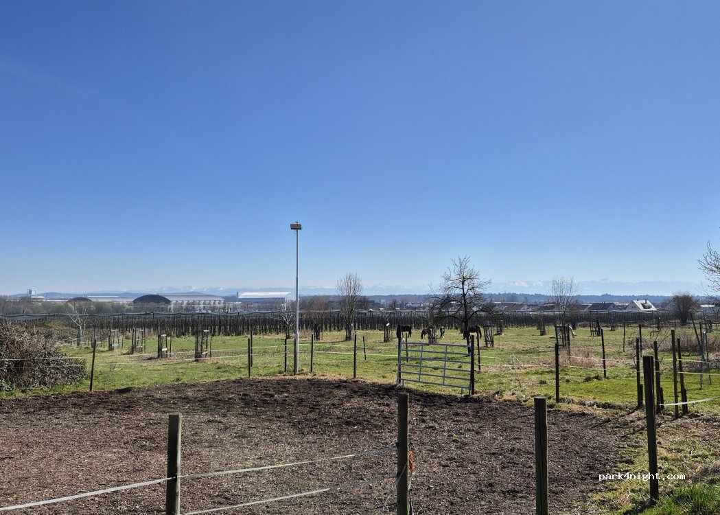 Große Empfehlung. Super ruhiger Stellplatz am Ende des Hofes. Die Betreiber sind sehr nett und hilfsbereit. Ich habe mich sehr wohl gefühlt. Auch für Hunde gut geeignet. Auf dem Hof selber leben drei Hunde, Hühner und Pferde. Man kann schön spazieren gehen und ist schnell in Friedrichshafen.