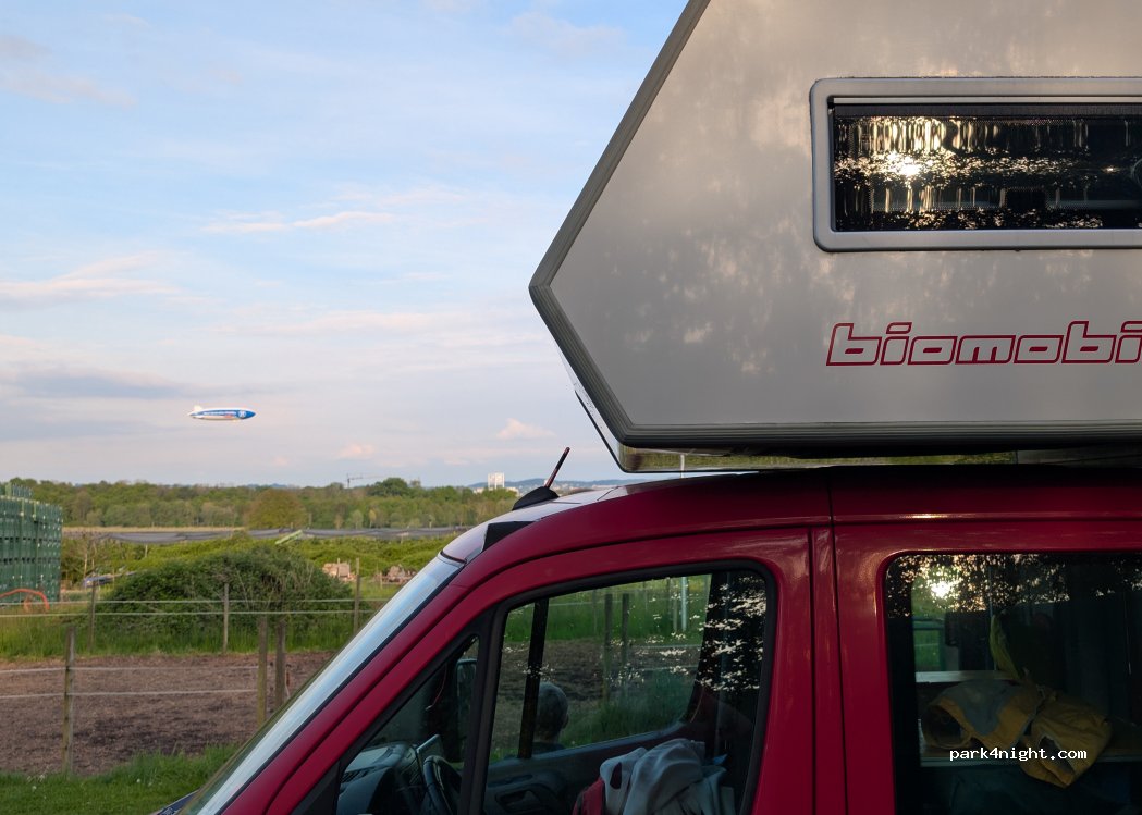 Great location for visiting the town. Bus stop almost outside the entrance. Cycling easy. Very quiet and peaceful. Nice view across his orchards and always the zeppelins flying. Owners very friendly and helpful. Good wifi, no grey water or black water dump.