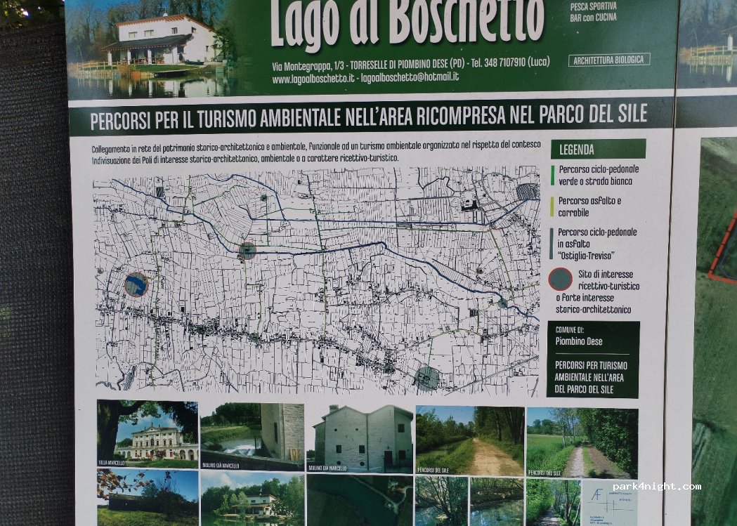 felice di essere stato il loro primo ospite, zona molto tranquilla accanto ad un laghetto di pesca sportiva molto ben tenuto, possibilità di ciclo tour dalle risorgive del sile e seguendo questo fiume come abbiamo fatto noi. i proprietari, Luca e compagna molto accoglienti ed alla mano, possibilità di pesca no kill. scarico nere e acqua potabile, elettricità a parte. posto consigliato