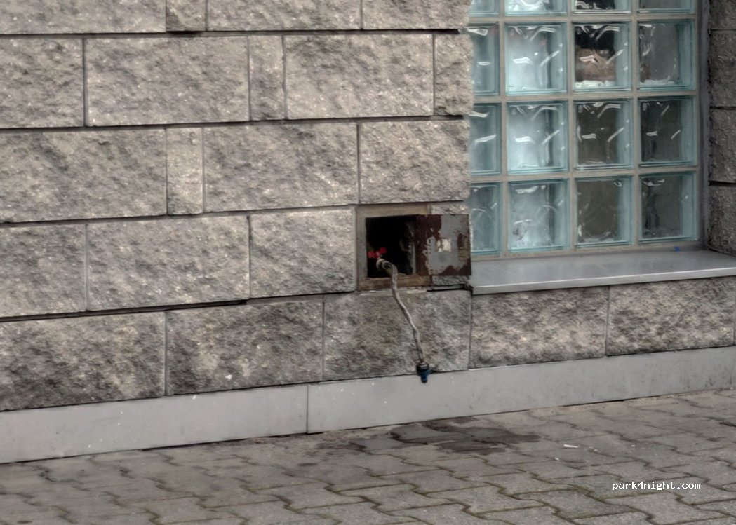 Kostenloser Frischwasserhahn an der Rückseite der Tankstelle