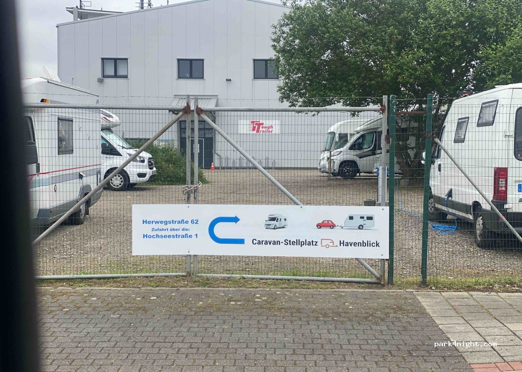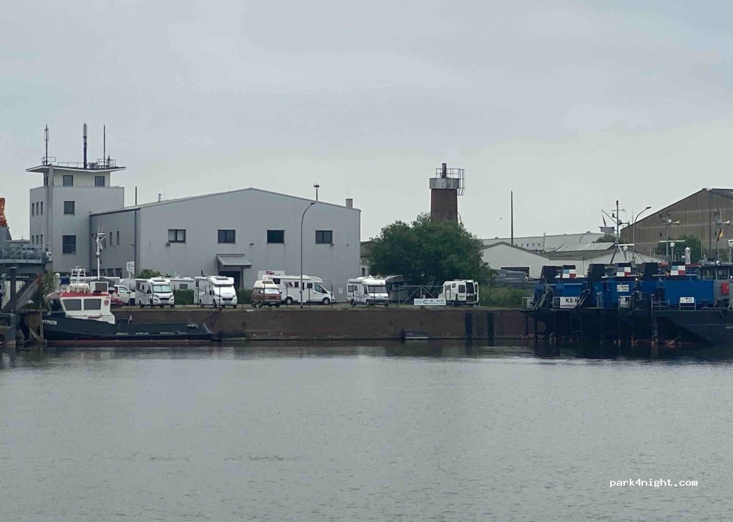 Mobile home parking space in the fishing port of Bremerhaven gravel place relatively flat. View of the water in the harbor basin, about 900m to the fishing quay "Am Schaufenster", about 500m to the bus stop that leads to the center. Nice personel. Reservation necessary, sensible.