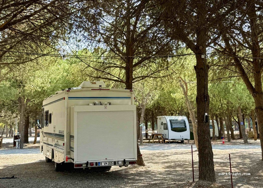 Belle aire de camping avec jolie petits emplacements, eau, électricité, douches et toilettes. Pour un tarif raisonnable (400tl). Une étoile en moins cependant pour le bruit qui peut être présent. Visiblement la route à côté est souvent prise pour un circuit et discothèque.
